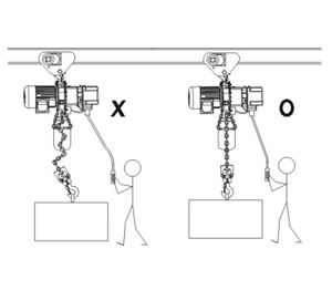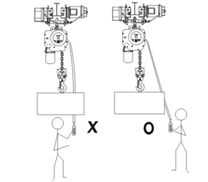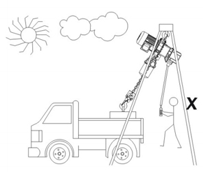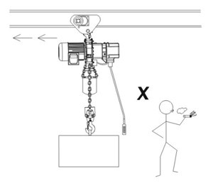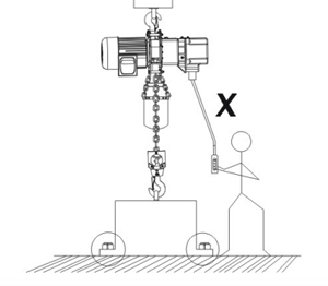 7、操作時嚴(yán)禁人員在吊運(yùn)物下行走或前進(jìn)方向以及嚴(yán)禁通過人員上方如下圖: