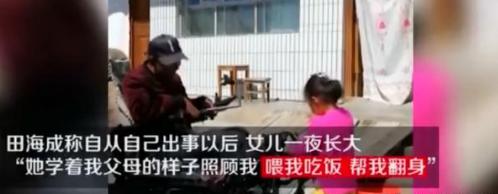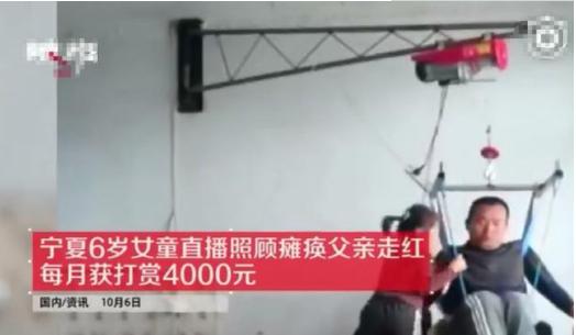 寧夏的一位姓田的男子在兩年前遭遇了車禍,這場車禍也讓男子高位截癱,喪失了工作能力,出事之后,男子的妻子離家出走,并且將女兒留下來了,這么小的年紀(jì),本該快快樂樂無憂無慮的長大,但是卻背上了照顧癱瘓爸爸的重?fù)?dān),由于兩個(gè)人實(shí)在沒有生活來源,從一年前開始6歲女兒便直播照顧自已的爸爸,依靠著每個(gè)月4000元的打賞生活,但是卻被人質(zhì)疑在“賣慘”。