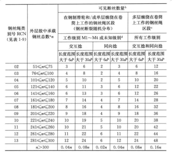 d)可將以上所列斷絲數(shù)的兩倍數(shù)值用于已知其工作級(jí)別為M5-M8的機(jī)構(gòu);參見GB/T 24811.1—2009.