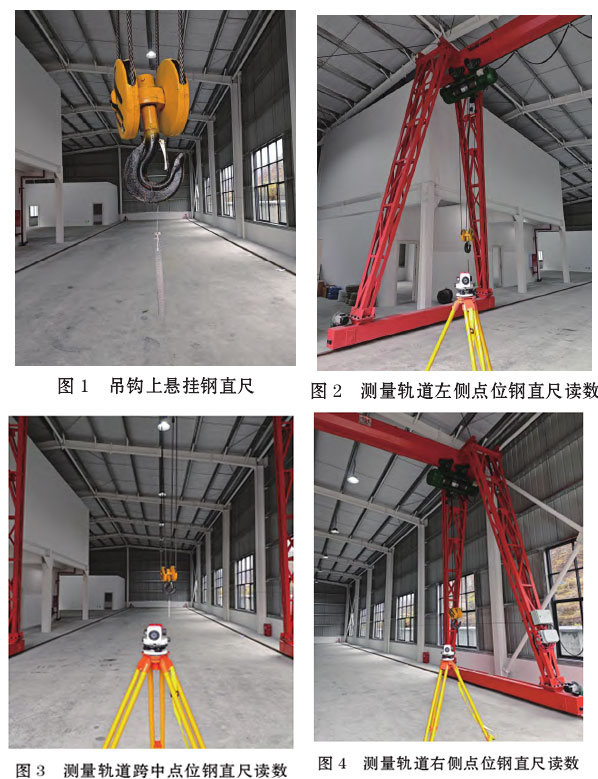 (2)將電動葫蘆運(yùn)行至軌道跨中(圖3),待鋼直尺靜止后,調(diào)整水準(zhǔn)儀目鏡,讀出目鏡中鋼直尺的刻度S2。
