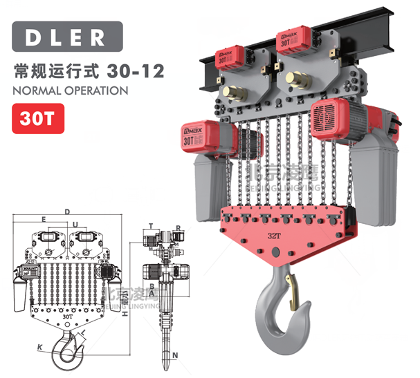 30噸DLEK環(huán)鏈電動葫蘆運(yùn)行式制動裝置:此裝置可以實(shí)現(xiàn)在電源切斷時(shí)瞬間剎車。