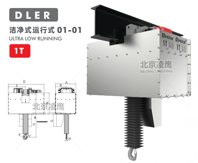 1噸DLEK環(huán)鏈電動葫蘆潔凈運行式上鉤與下鉤超低距離設(shè)計,有效提高空間高度。