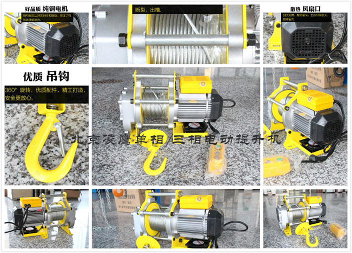 單項多功能電動提升機較普通的電動提升機最大的區(qū)別在于是可以在單相電的情況話進行操作的。本產(chǎn)品嚴格按國家3包執(zhí)行,產(chǎn)品質(zhì)量由中國人民保險公司(PICC)承保,請放心使用。